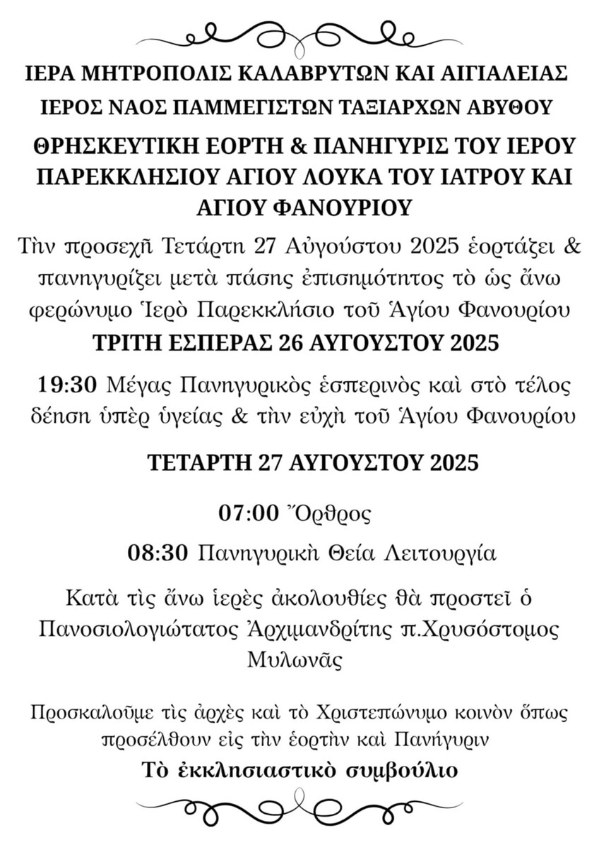 Copyright © 2025 - 2026 Ιερά Μητρόπολις Καλαβρύτων & Αιγιαλείας