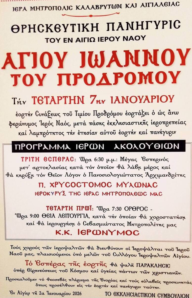 Θρησκευτική Πανήγυρη Ιερού Ναού Αγίου Ιωάννου του Προδρόμου Καλλιθέας Αιγίου