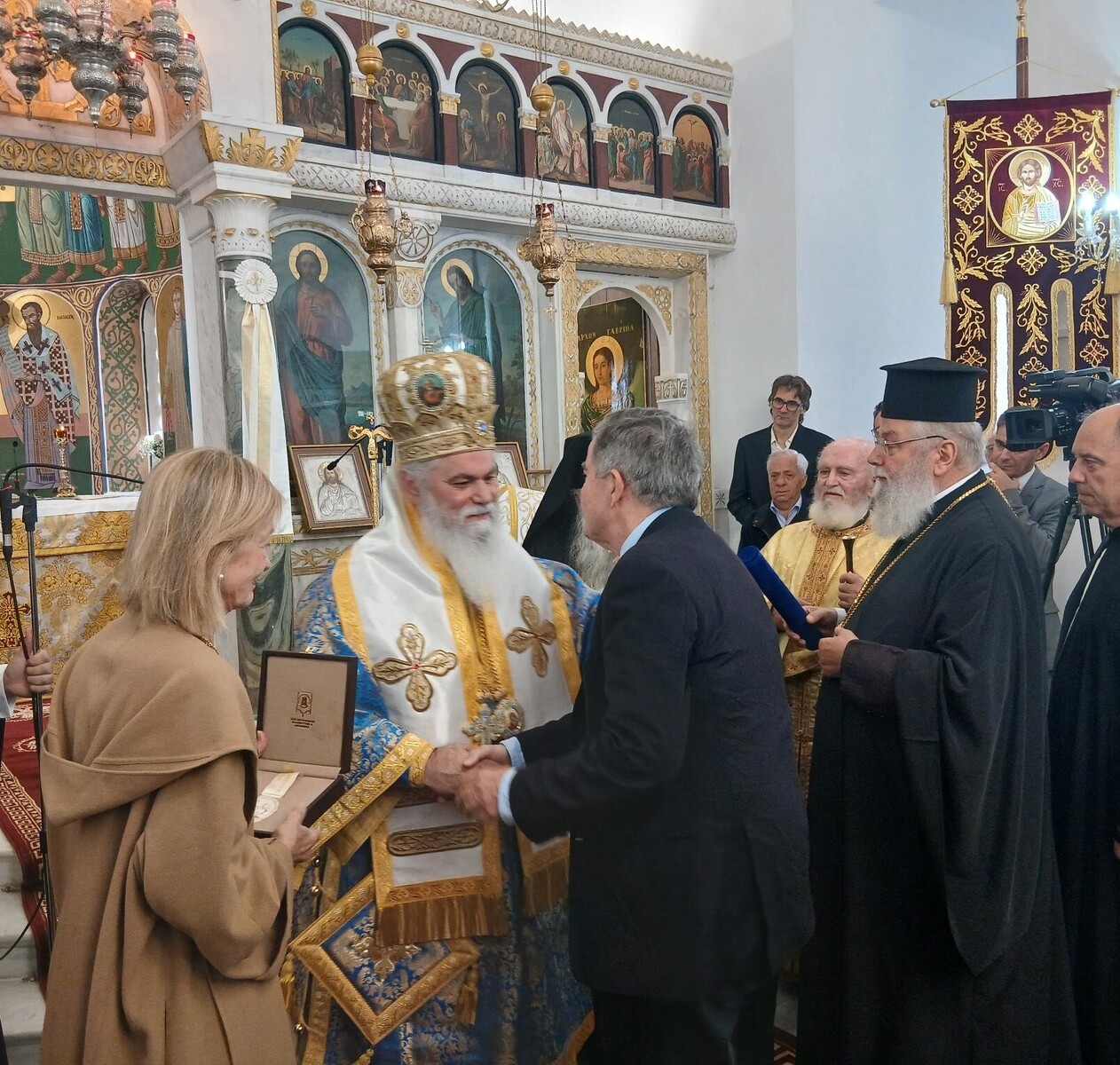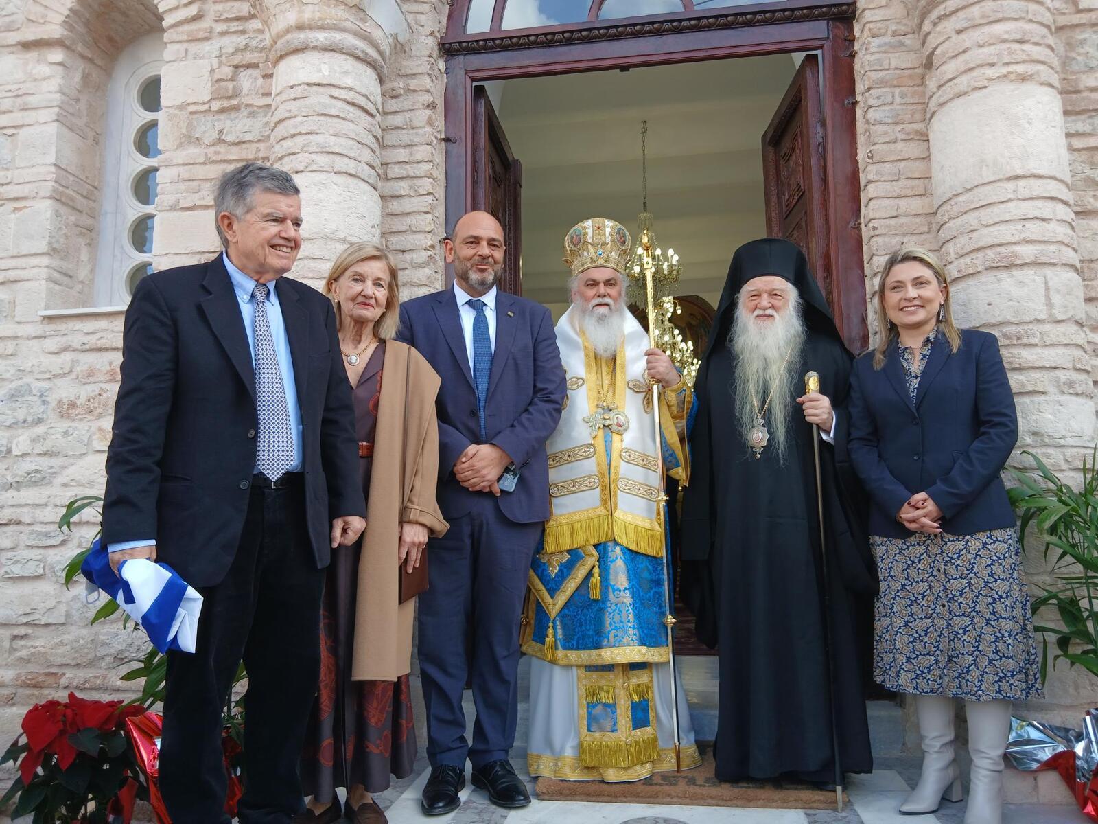 Τέλος, ο Σεβασμιώτατος Μητροπολίτης κ. Ιερώνυμος και ο Σεβασμιώτατος Μητροπολίτης κ. Αμβρόσιος προσέφεραν αναμνηστικά δώρα και ευλογίες στον κ. Μαρτίνο, ενώ προσεφέρθη ως ευλογία σε όλους τους παρευρισκομένους αντίγραφο της ιεράς εικόνος των Εισοδίων της Θεοτόκου και άλλα συμβολικά δώρα.