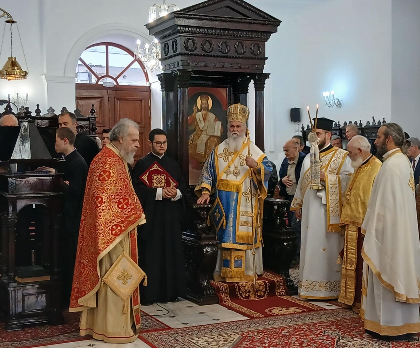 Εν συνεχεία, εξέφρασε τις θερμές και ευγνώμονες ευχαριστίες του προς τον Σεπτό Προκάτοχό του κ. Αμβρόσιο και προς τους Μεγάλους Ευεργέτες της Εκκλησίας μας κ. Αθανάσιο και Μαρίνα Μαρτίνου για τις θεάρεστες και φιλάνθρωπες ενέργειες στις οποίες προέβησαν, χαρίζοντας στον λαό του Θεού ένα πραγματικό εγκαλλώπισμα της Εκκλησίας.