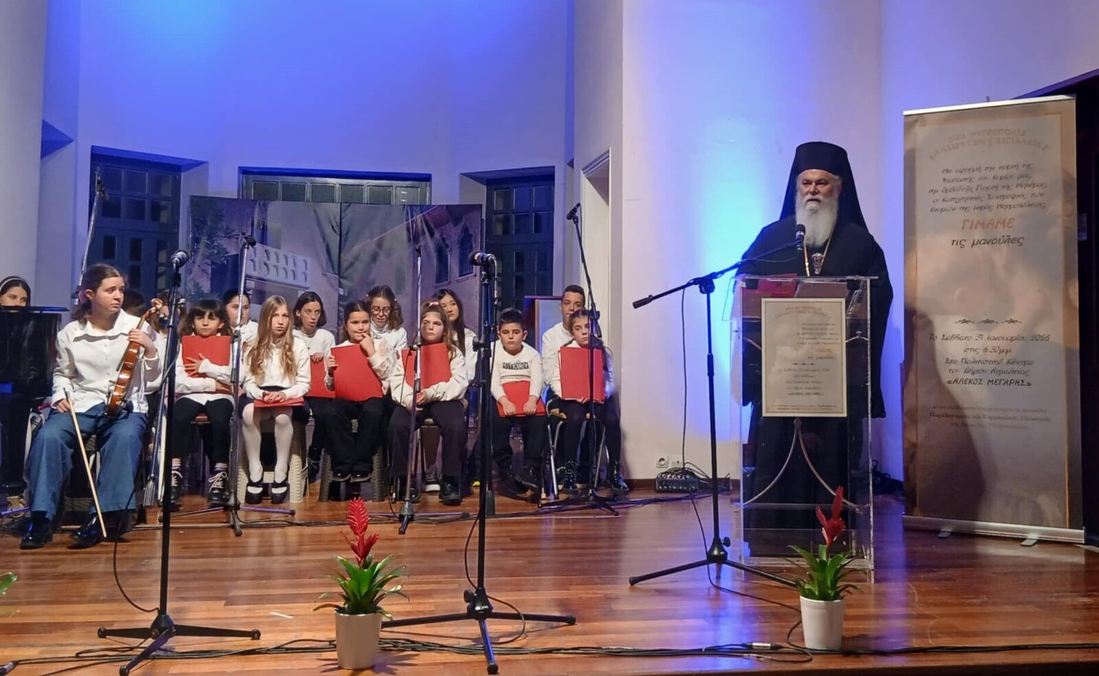 Τόνισε ότι μέσα στους κόλπους της Εκκλησίας τα παιδιά διδάσκονται την πίστη, την αγάπη, τον σεβασμό, την ταπεινότητα και την ευγένεια, αρετές πολύτιμες και αναγκαίες για το μέλλον της κοινωνίας. Επεσήμανε ακόμη ότι σε έναν κόσμο που μεταβάλλεται διαρκώς, η πατρίδα μας καλείται να διαφυλάξει ζωντανή την ελληνοχριστιανική της ταυτότητα ως πνευματικό θεμέλιο και σημείο αναφοράς.